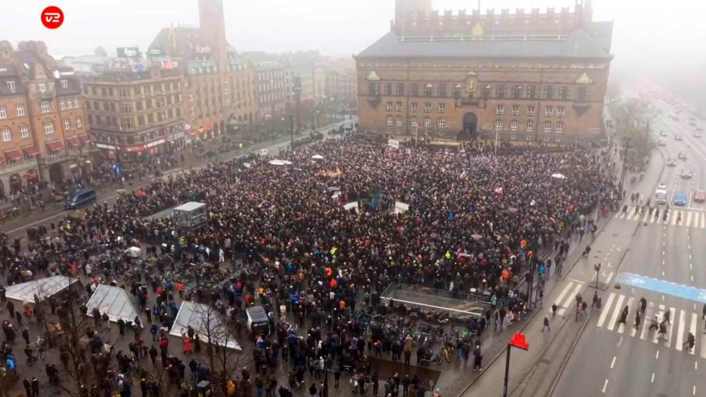 رفع المتظاهرون أعلام الدنمارك وجرينلاند وشكلوا بحراً من اللونين الأحمر والأبيض أمام مبنى بلدية كوبنهاجن، مرددين هتافات "Kalaallit Nunaat!"، وهو الاسم الغرينلاندي للجزيرة، كما نظمت جمعيات جرينلاندية مماثلة احتجاجات في آرهوس، آلبورغ، أودنسه، وفي العاصمة الغرينلانديّة نوك، حيث سيسير المتظاهرون إلى القنصلية الأمريكية حاملين أعلام غرينلاند.
