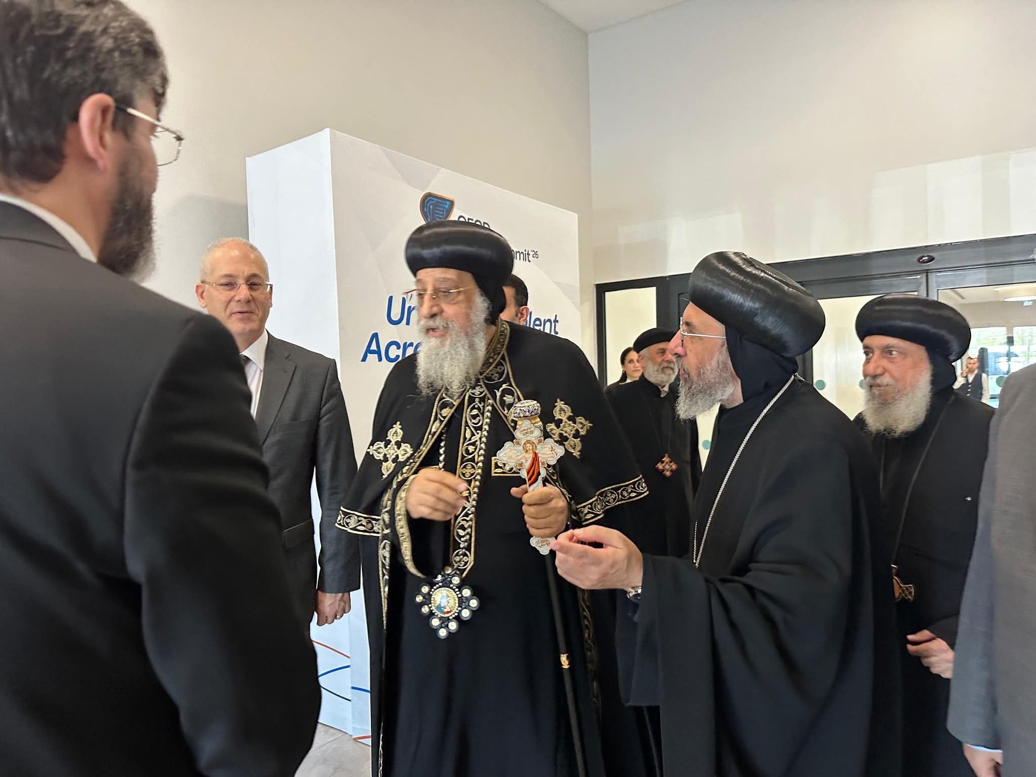 كما كان في استقبال قداسة البابا والوفد المرافق سيادة المطران إيمانويل مطران خلقيدونية.