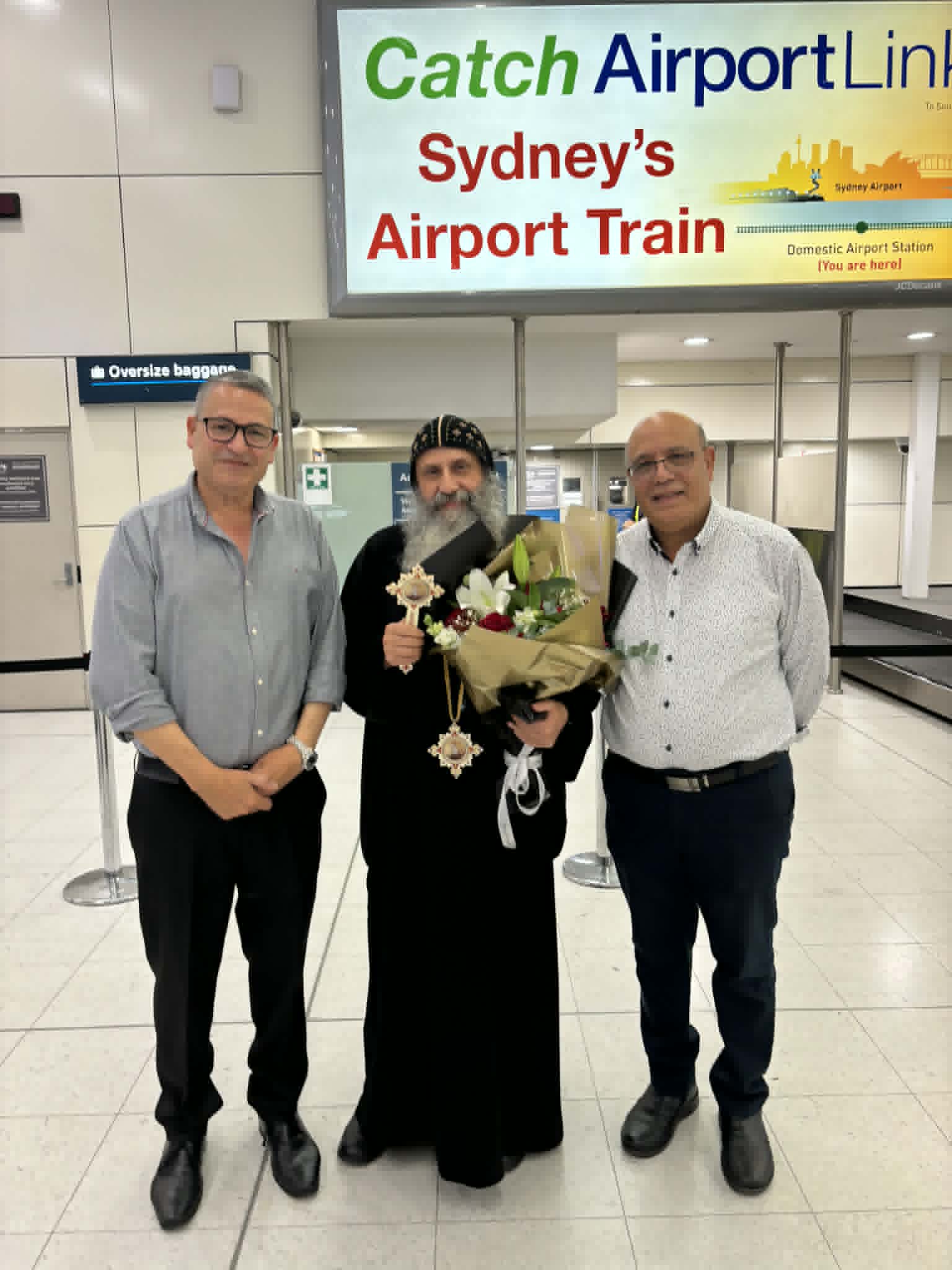بالصور.. استقبال نيافة الأنبا بيجول أسقف ورئيس دير القديسة العذراء مريم ” المحرق ” بمطار سيدني الداخلي بأستراليا