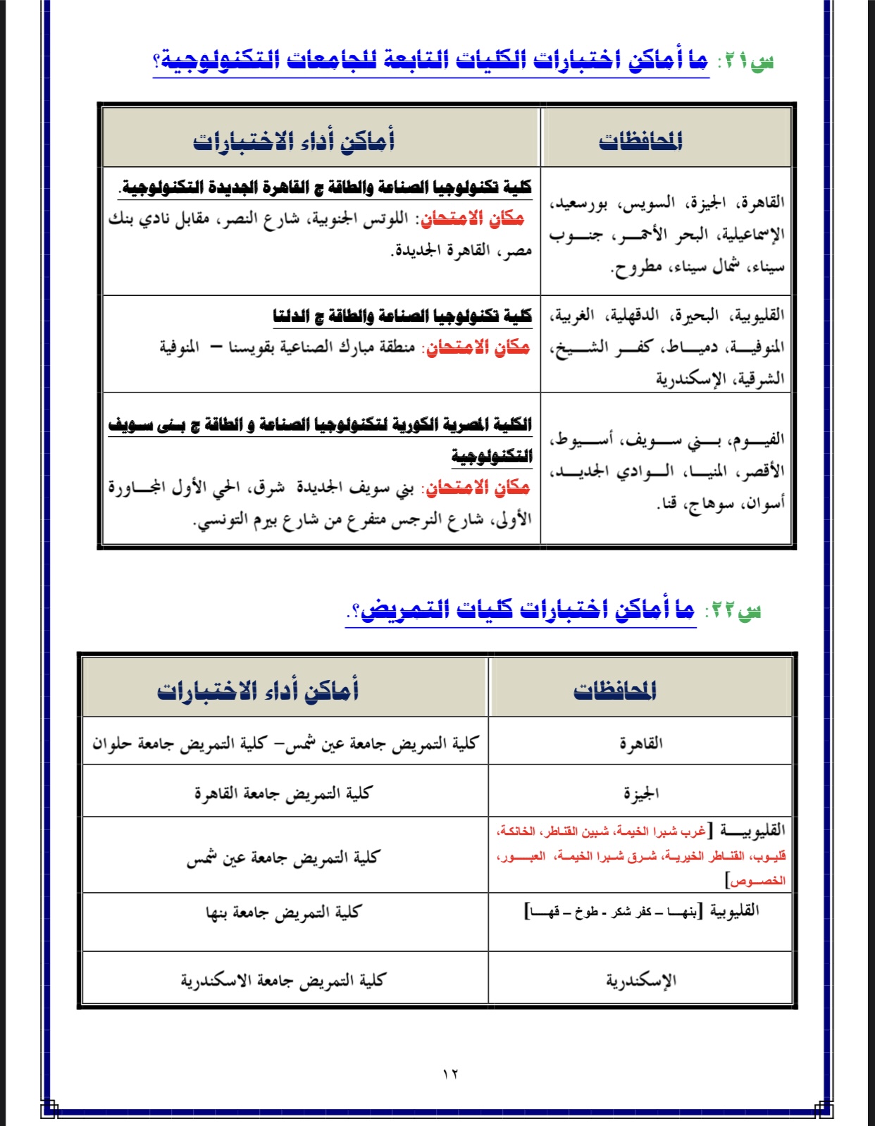غير مسموح لأولياء الأمور بدخول الكليات، ومسموح فقط بدخول الطلاب في اليوم الذي حدده موقع التنسيق لإجراء الاختبار.